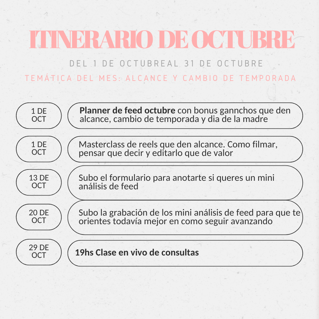 Cada mes trabajamos una temática diferente (organización, contenido, tienda online, historias, video, etc) para que avances con foco y a tu ritmo