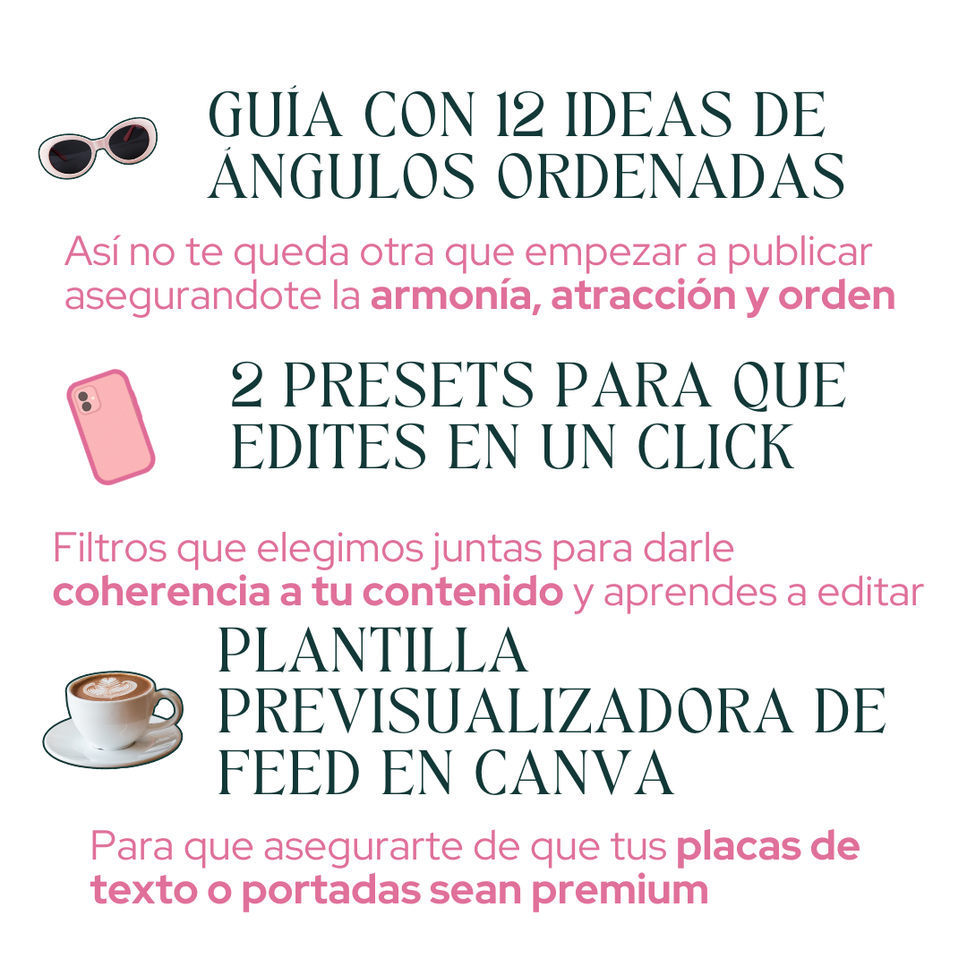 ✅ Estás lista para dejar atrás el “contenido al tuntún” y ordenar tu negocio con intención: desde fotos hasta tu tienda, desde tu identidad visual hasta tu estrategia de ventas